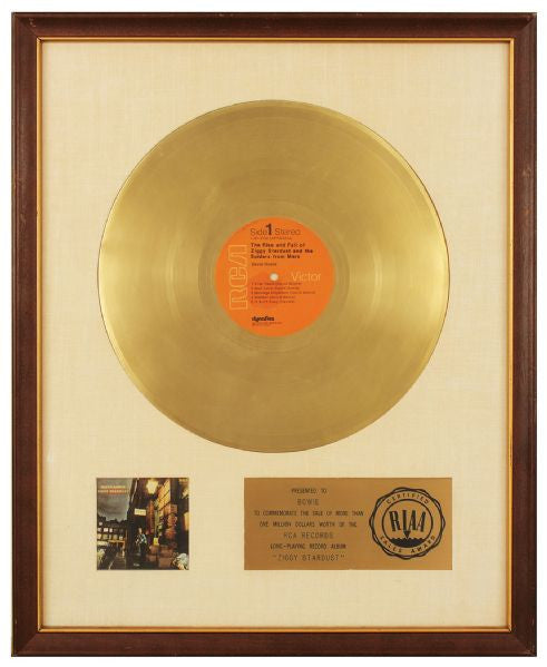 "Ziggy Stardust" Original RIAA White Matte Gold Album Award Presented to David Bowie