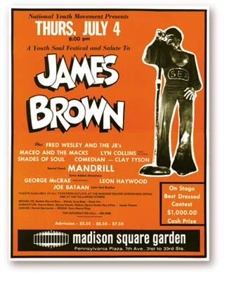 This handbill presents the "Godfather of Soul," James Brown and other soul and r & b performers on July 4th, 1974 at Madison Square Garden in New York City. 8.5x11". EX.
